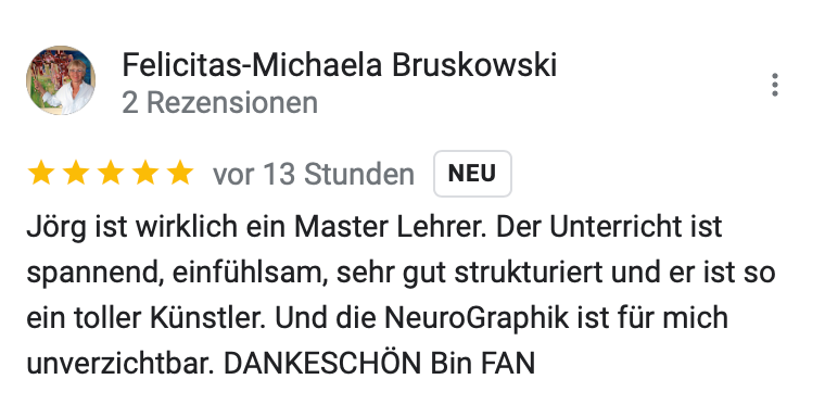 Das sind aktuell die Methoden, mit denen ich arbeite und die ich als erster im deutschsprachigen Raum seit 2017 lehre. Denn die Neurographik hat ein großes Ziel, das meinem Ansatz entspricht, mit dem ich 2013 meinen dritten beruflichen Weg gestartet habe: Mit Hilfe von Kunst das Leben vom Menschen auf ein höheres Qualitätsniveau zu heben. Ich nenne das Personal Art. 2025 startet dazu ein eigener Kurs (Personal Art® Practitioner und Personal Art® Master), der Neurographik mit Kunst verbindet.