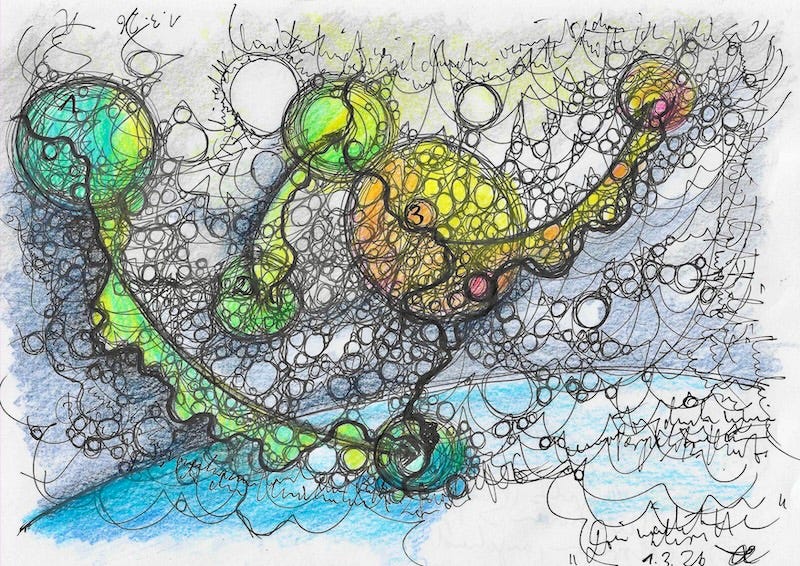 Ich bin neu inspiriert in meinem Alltag mehr zu zeichnen und freue mich darauf, meine Zwischenzeit - bis die nächste Lebensaufgabe da ist - zeichnend statt denkend zu verbringen und mich so meinem neuen Interesse an "Nichtwissen" widmen zu können - ist mir heute Abend klar geworden :)))))