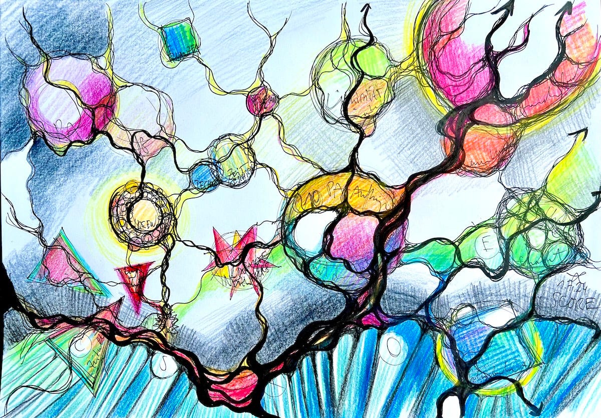 Neurographik ist ein sehr angenehme Art und Weise, um (Lebens)Themen zu bearbeiten. Es macht Spaß, entspannt, der Umgang mit Farbe und Stiften tut gut. Du bist ein sehr guter Lehrer, hast eine angenehme Stimme und deine Leidenschaft für das Thema ist ansteckend.